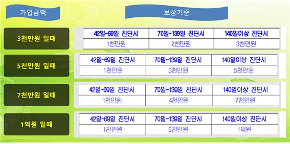 참고) 운전자보험 가입금액으로 받을 수 있는 보상기준(보험사별 상이)